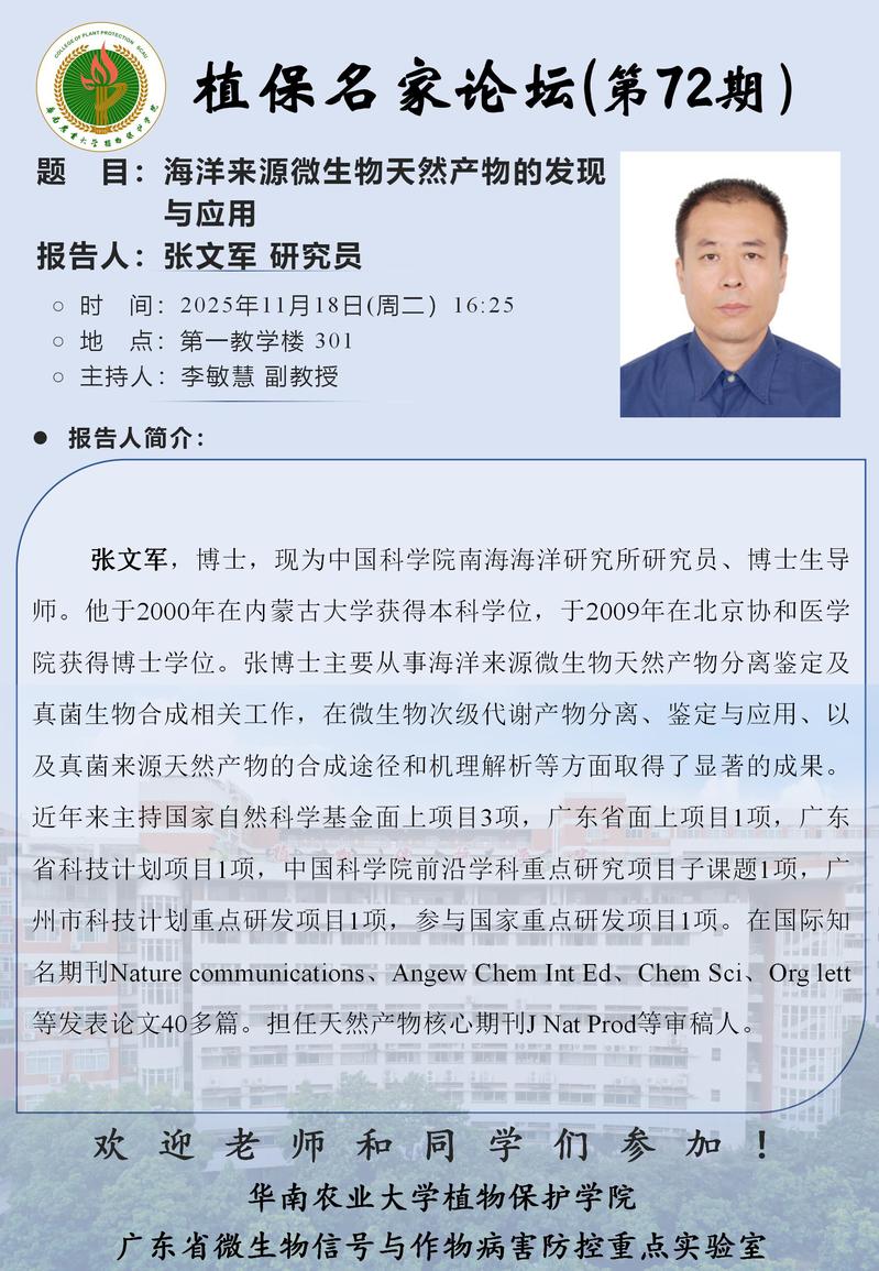 地址:广州市天河区五山路483号华南农业大学植物保护学院大楼