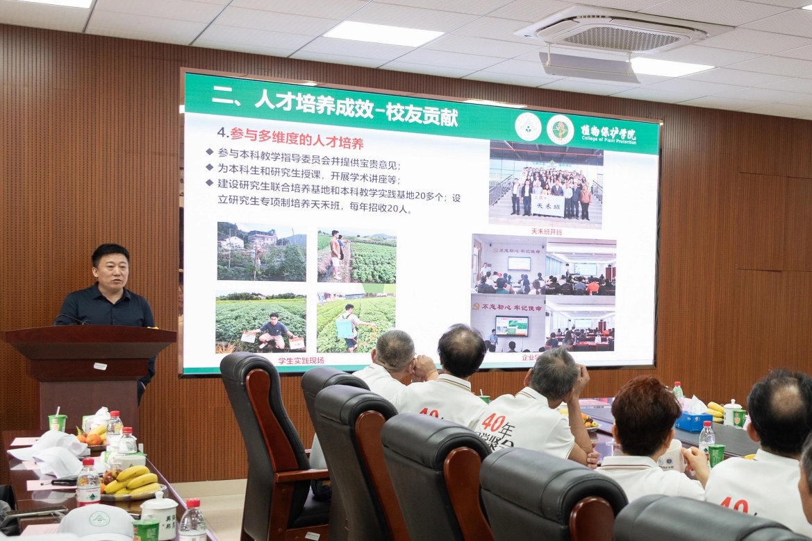 金丰良院长向1985届植保校友介绍学校学院发展情况