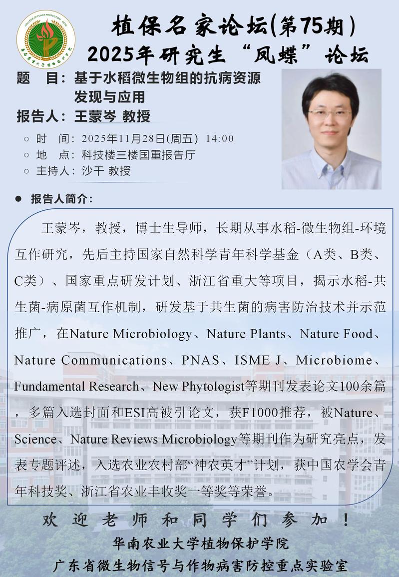 地址:广州市天河区五山路483号华南农业大学植物保护学院大楼