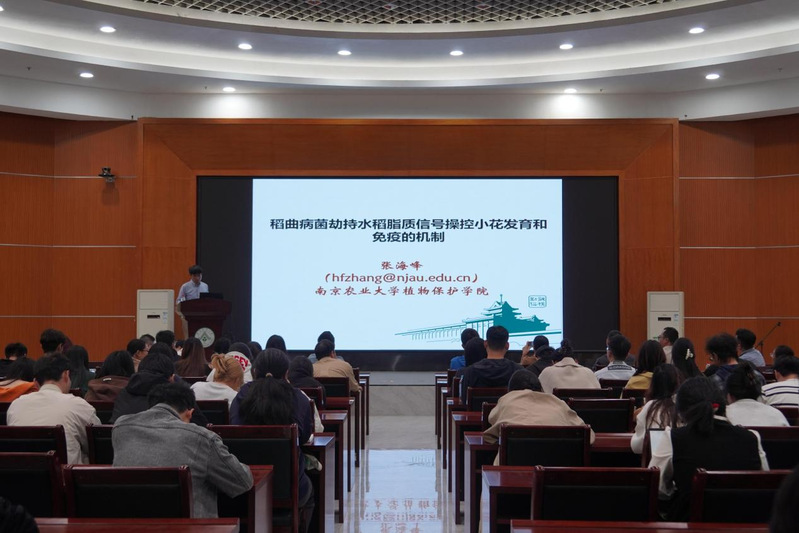 2025年11月25日,植保名家论坛第74期在科技楼三楼国重报告厅举办。学院特邀郭维研究员、寇艳君研究员与张海峰教授,分别开展了题为《玉米镰孢菌穗腐病致害规律与绿色防控技术探索》、《稻瘟病菌-水稻-环境互作机制》和《稻曲病菌劫持水稻脂质信号操控小花发育和免疫的机制》的学术报告,报告由我院植物病理学系张彤教授主持。