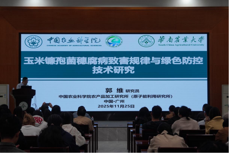 郭维研究员系统报告了在玉米镰孢菌穗腐病研究领域的系列突破。该病及其产生的真菌毒素严重威胁玉米产业链各环节的质量安全,研究团队成功解析了病原菌拟轮枝镰孢菌的致害机制,发现其侵染会优先利用并破坏籽粒中的支链淀粉结构。在技术上,团队取得了多方面进展:建立了针对产毒镰孢菌的LAMP、RPA-LFD及便携式RPA-Cas12a-LFD试剂盒等系列快速检测方法;揭示了效应蛋白FvCFEM12的致病功能;并创新性地利用哈茨木霉合成纳米银颗粒,用于防控玉米穗腐病。