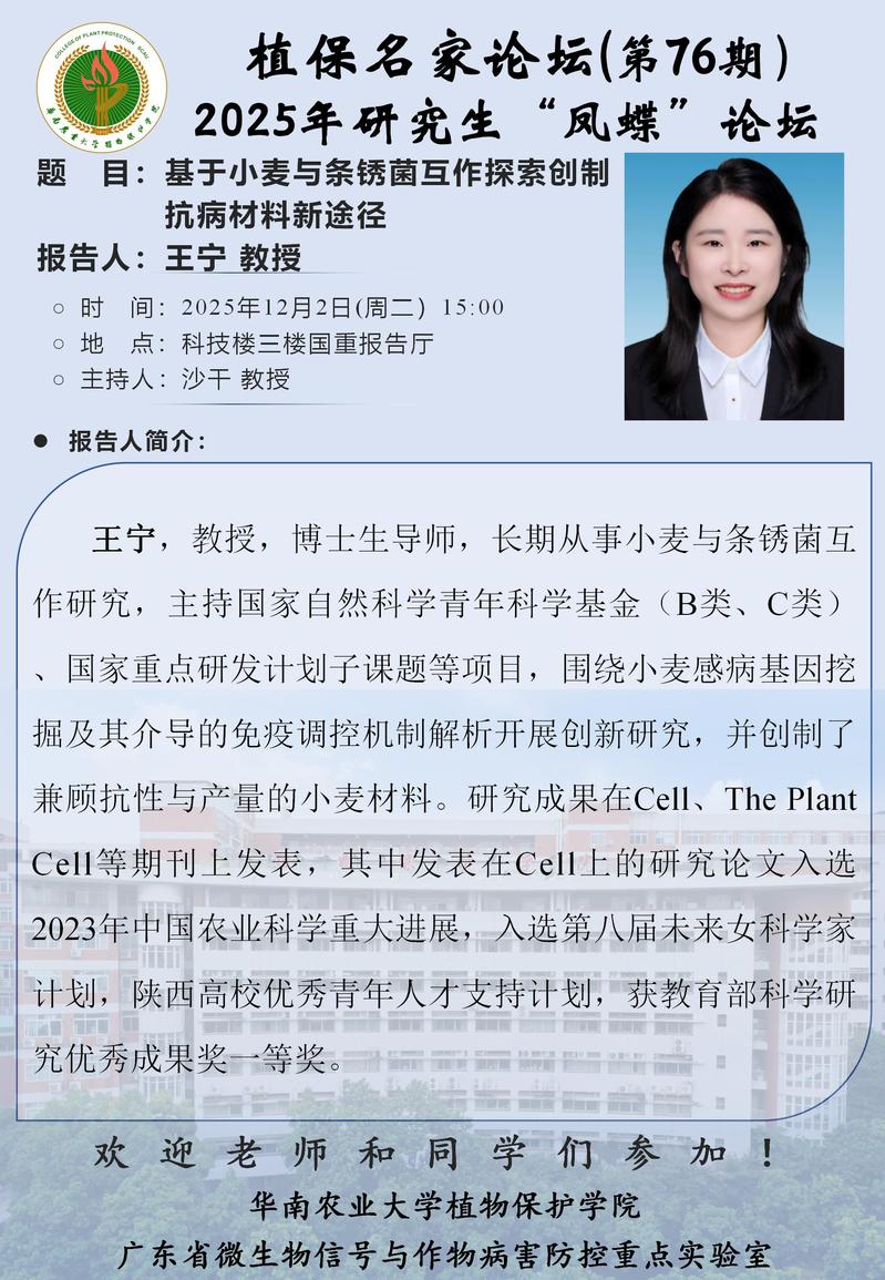 地址:广州市天河区五山路483号华南农业大学植物保护学院大楼