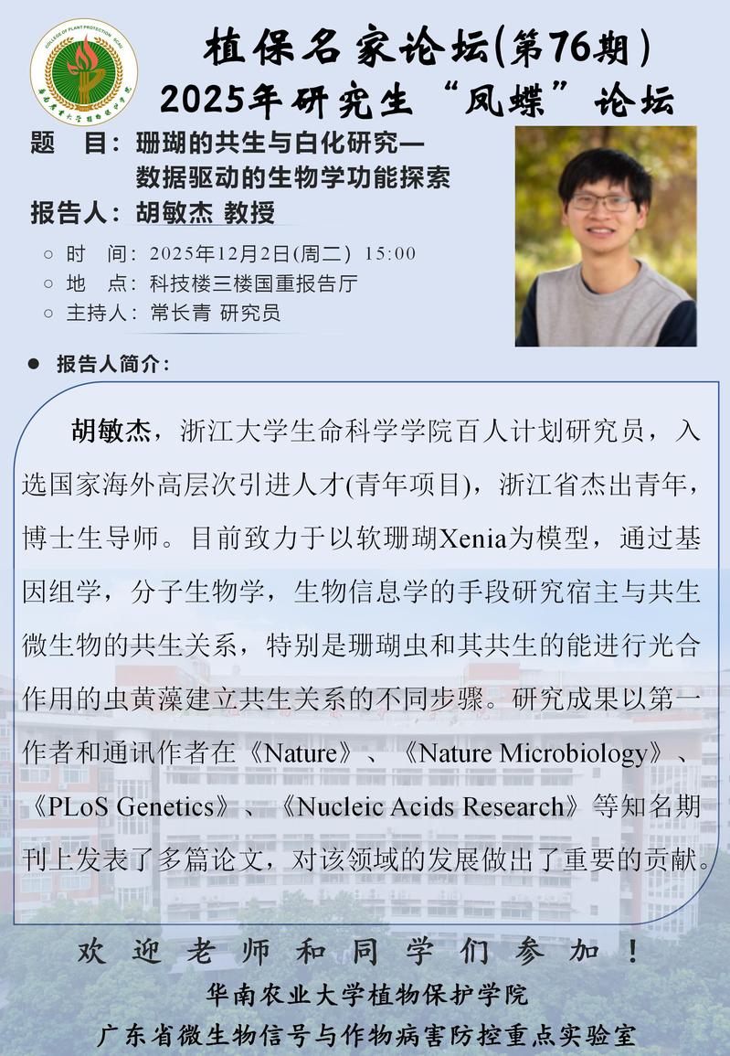 地址:广州市天河区五山路483号华南农业大学植物保护学院大楼