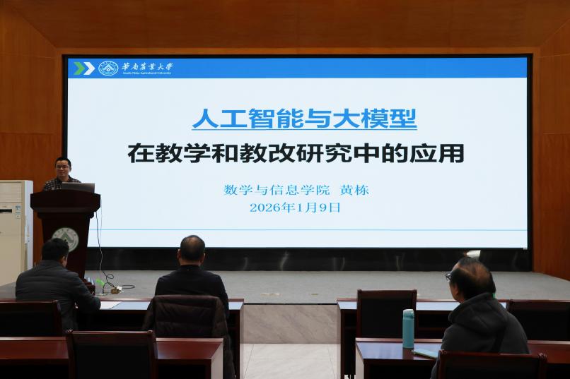 数信学院副院长黄栋教授应邀作题为《人工智能与大模型在教学和教改研究中的应用》专题报告,从开发者与用户双重视角阐释了人工智能技术对教育教学改革的赋能路径。学院还邀请智慧树公司工作人员介绍植保专业大模型的功能特色与实际应用场景,并对该模型在智能问答、实训模拟、学情分析等方面的功能进行演示。