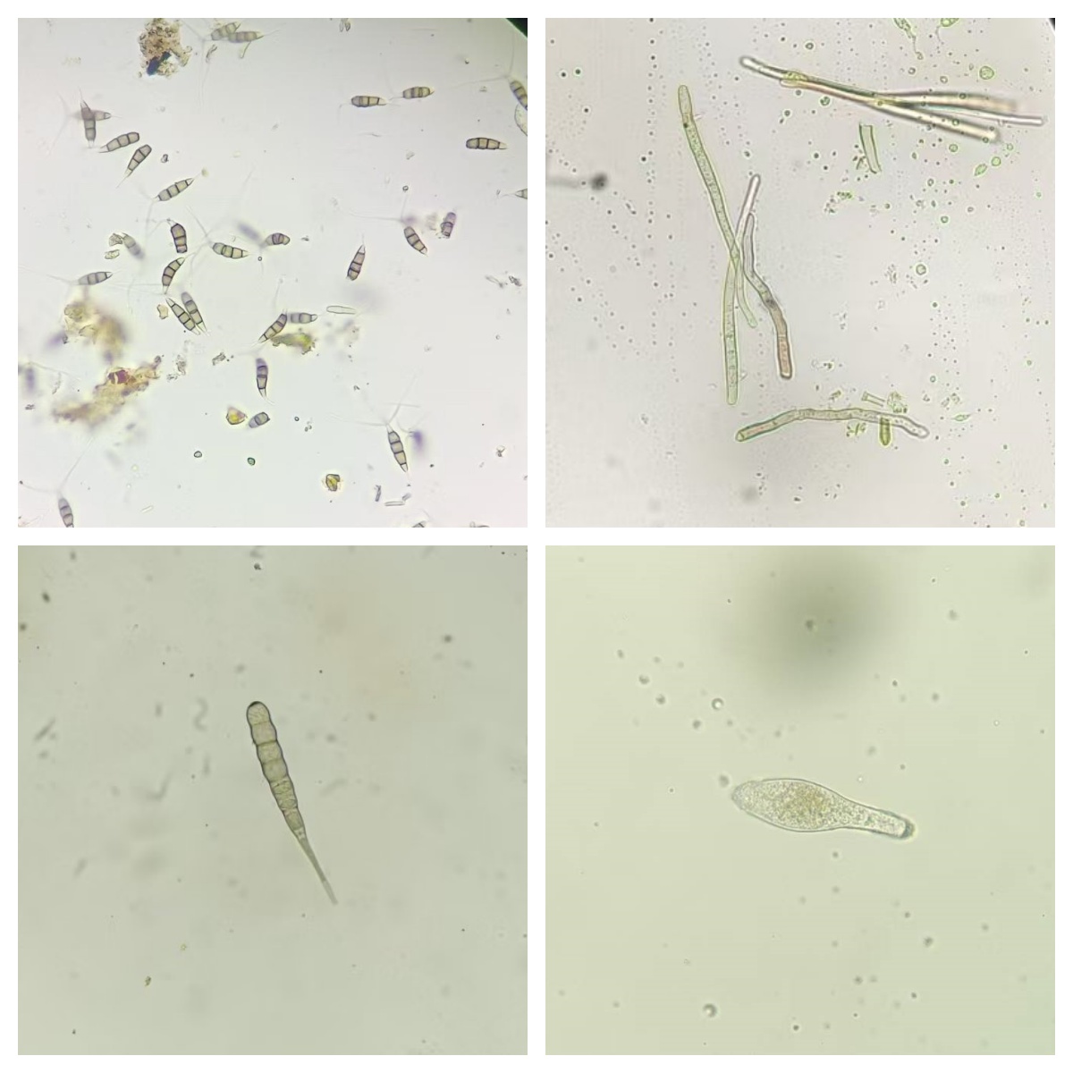 左下:空心莲子草叶斑链格孢 右下:桑背白粉病菌