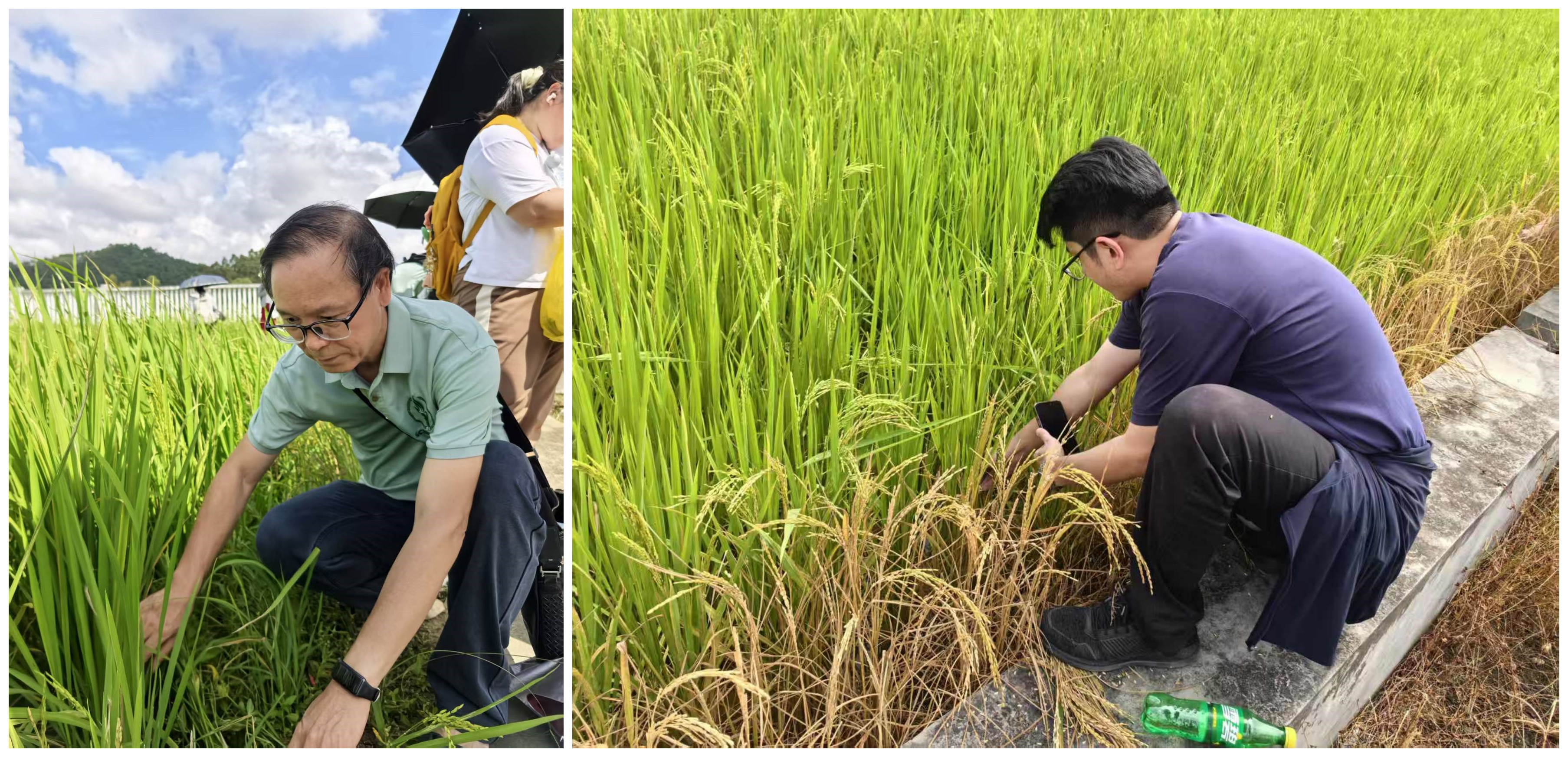 图3老师们在水稻田里观察病害(增城实验基地)