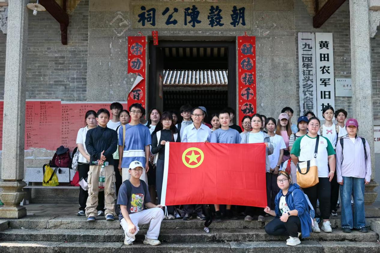 图9师生在江头乡农民协会旧址前合影(四会黄田镇)