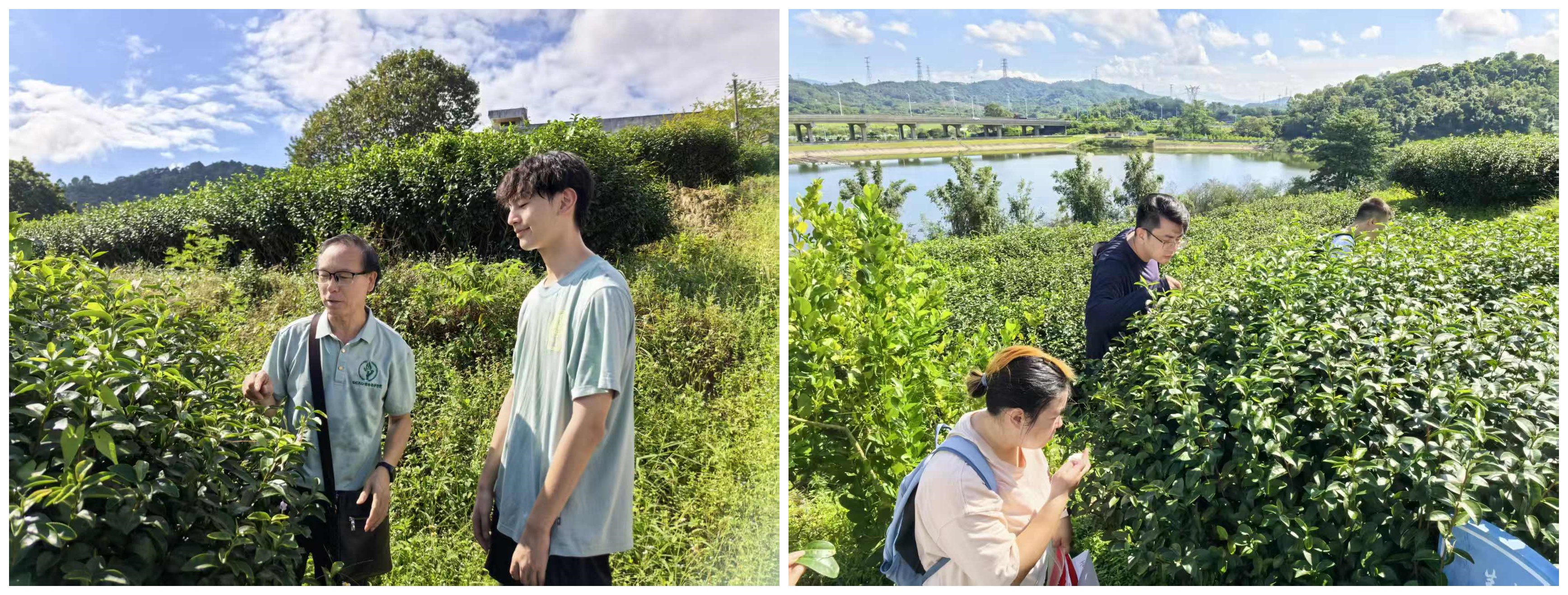 图2老师们指导同学们识别茶树病害症状及采集标本(增城实验基地)