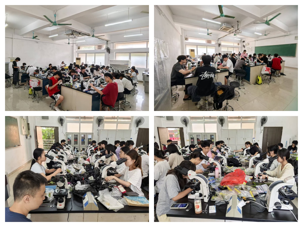 图10同学们在室内对农作物病害标本进行认真细致的镜检鉴定